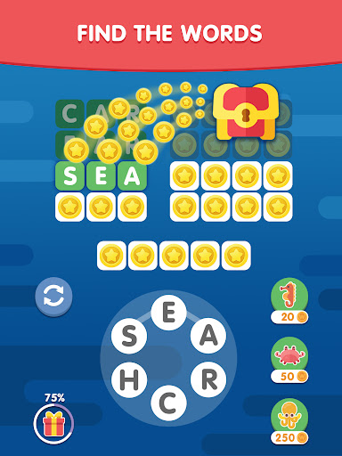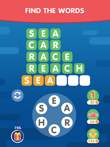 WORD SEARCH SEA Each level features a word list to fill and a letter wheel. Your goal is to find the right combinations and complete the list. It starts easy, but don’t get too comfortable – the puzzles get much tougher as you progress! 🧠 How big is your vocabulary? Let’s find out!